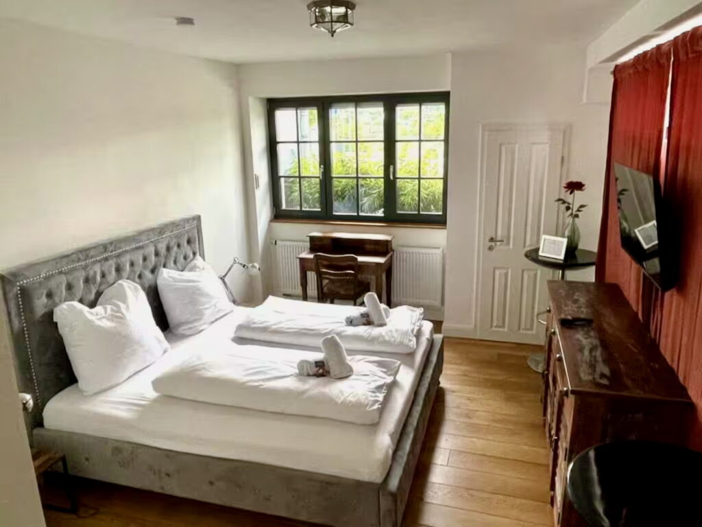 The tower offers two romantic and inviting bedrooms, each designed for relaxation and equipped with a TV.