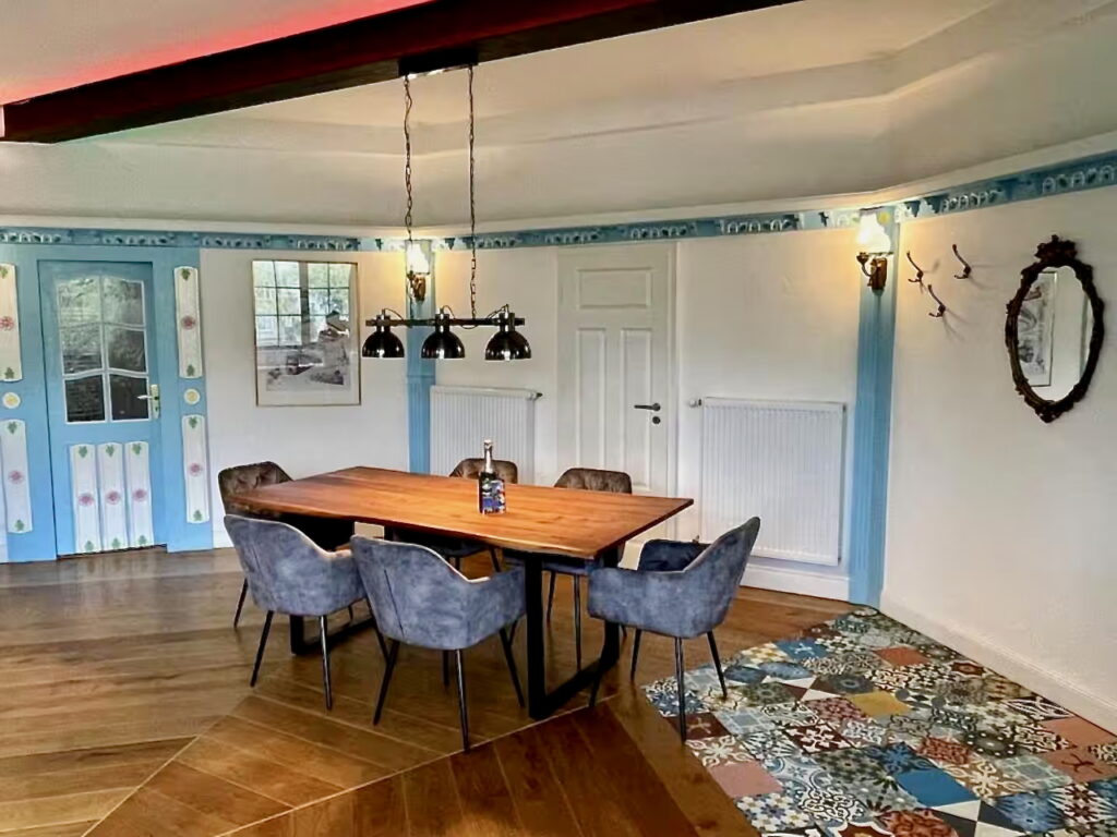 The unique circular layout, original details, and warm lighting give the space a one-of-a-kind atmosphere that blends industrial heritage with contemporary design.