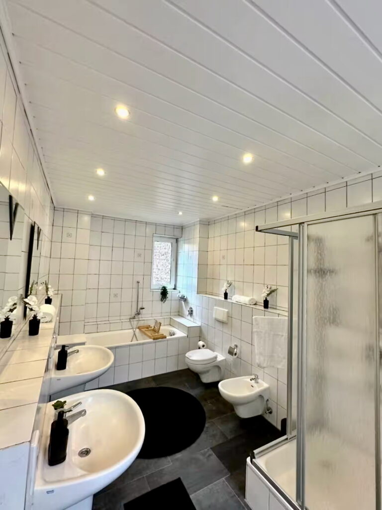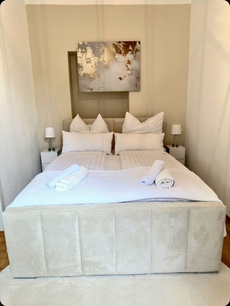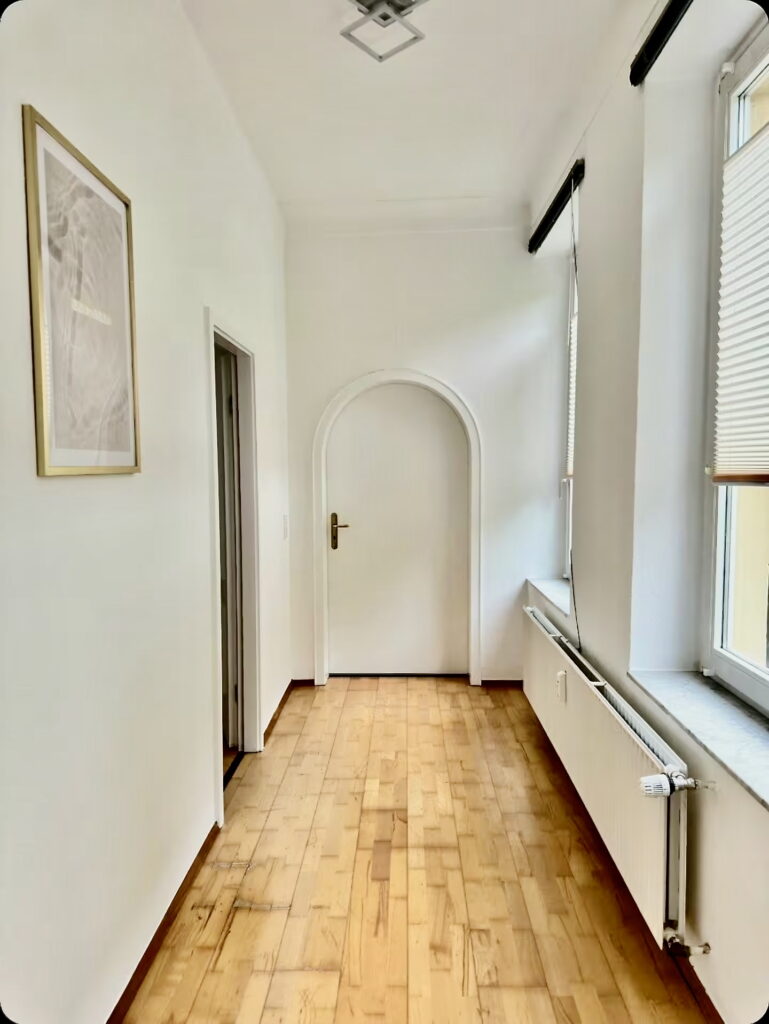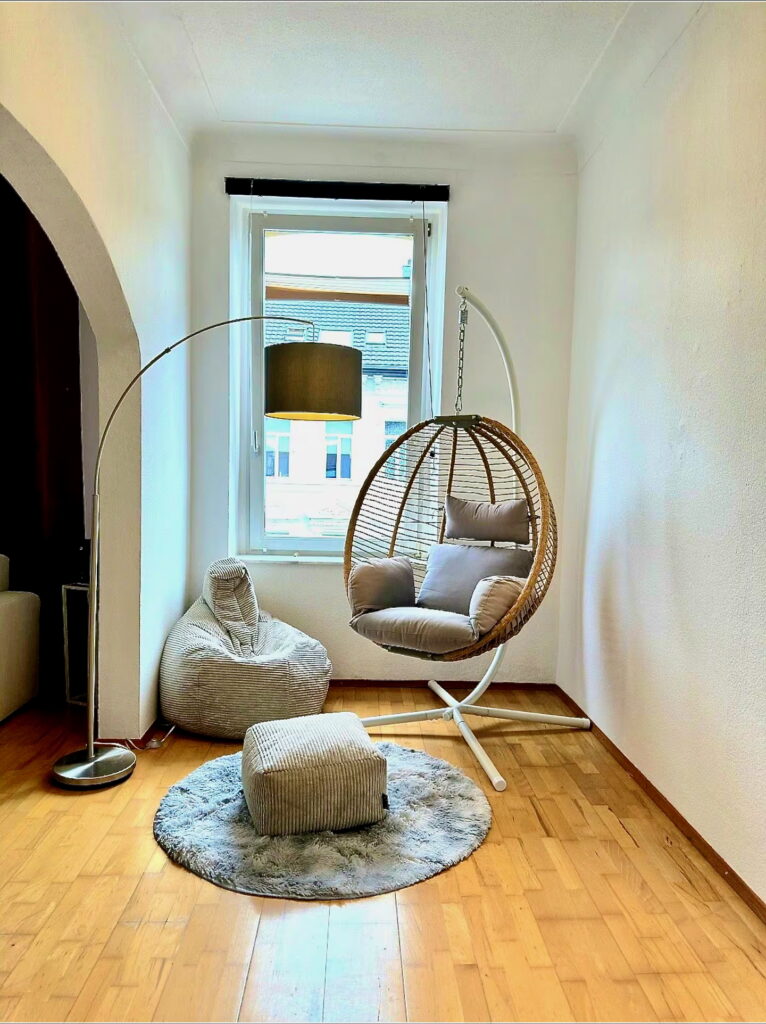 The apartment offers a variety of picturesque nooks perfect for creative shots, each filled with character and light. A large, pristine white bathroom completes the setting — elegant, airy.