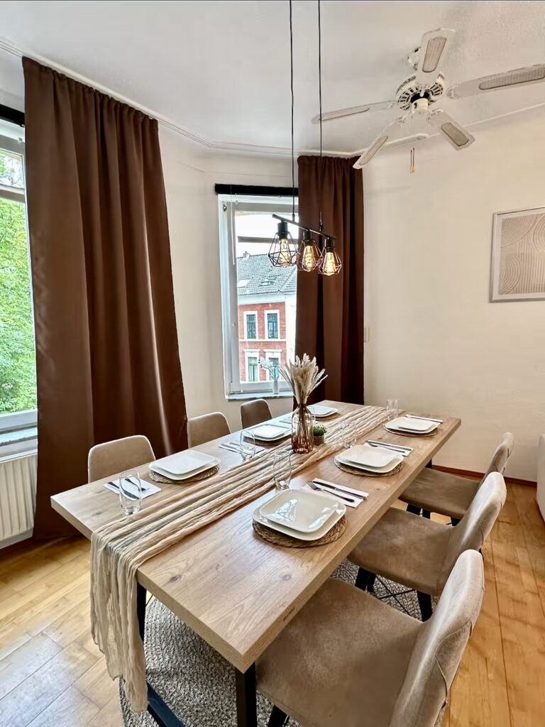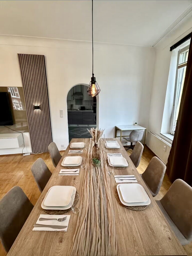 An endless dining table bathed in soft, natural light creates the perfect stage for sophisticated shots.
