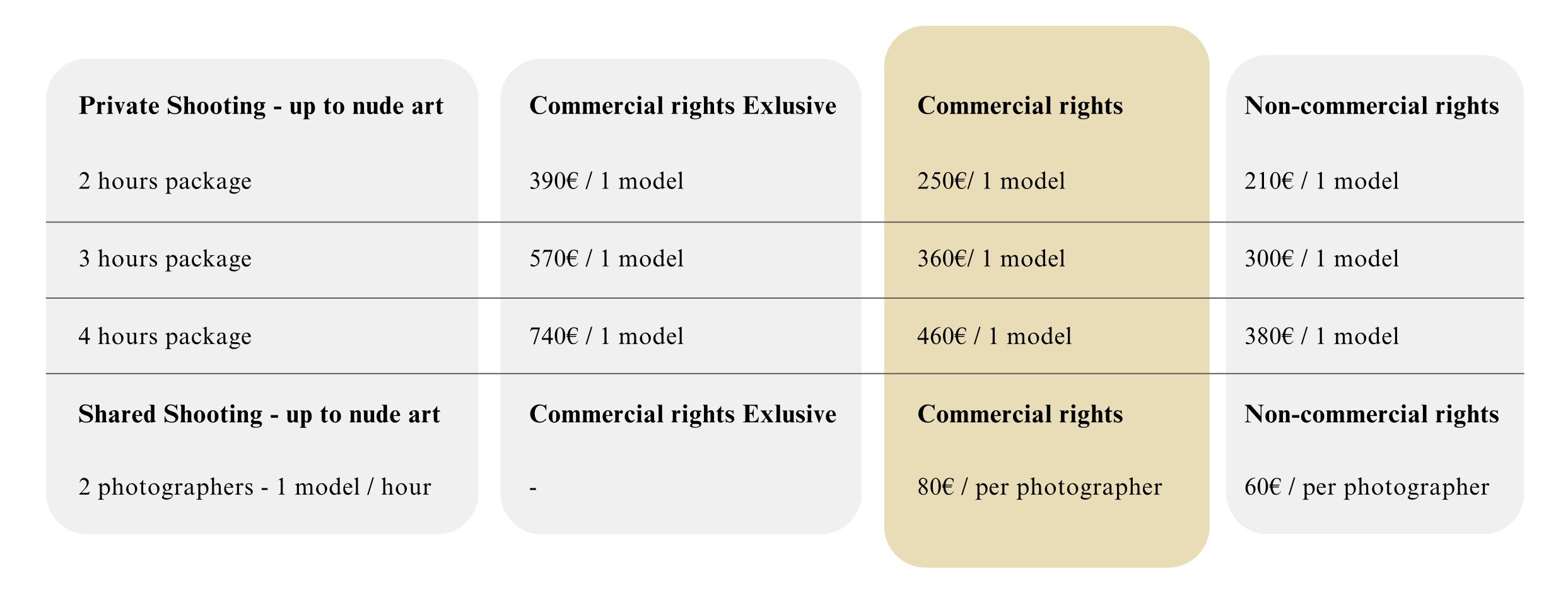 *For shoots longer than 4 hours, please contact us for a special rate.